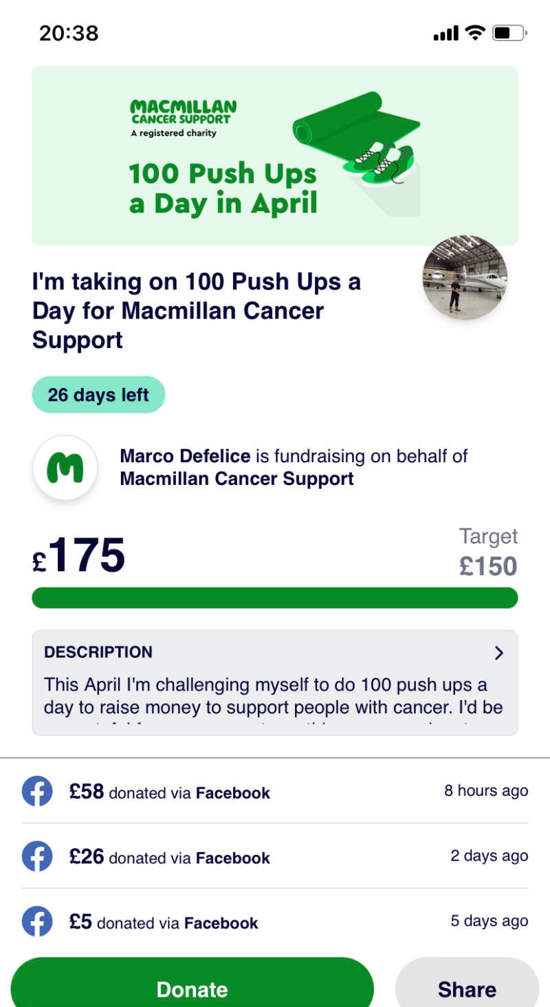 Founder of Goal-Focusin Marco Massimino Defelice is took part in the 100 Press-ups a day throughout April 2024 for McMillan Cancer Suport Charity.